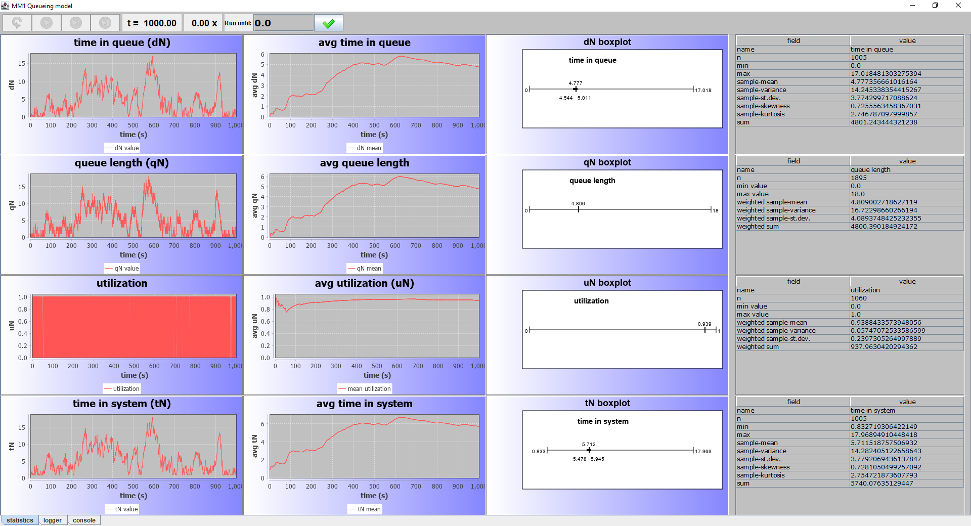 tN.add("tN mean", model.tallyTimeInSystem,
